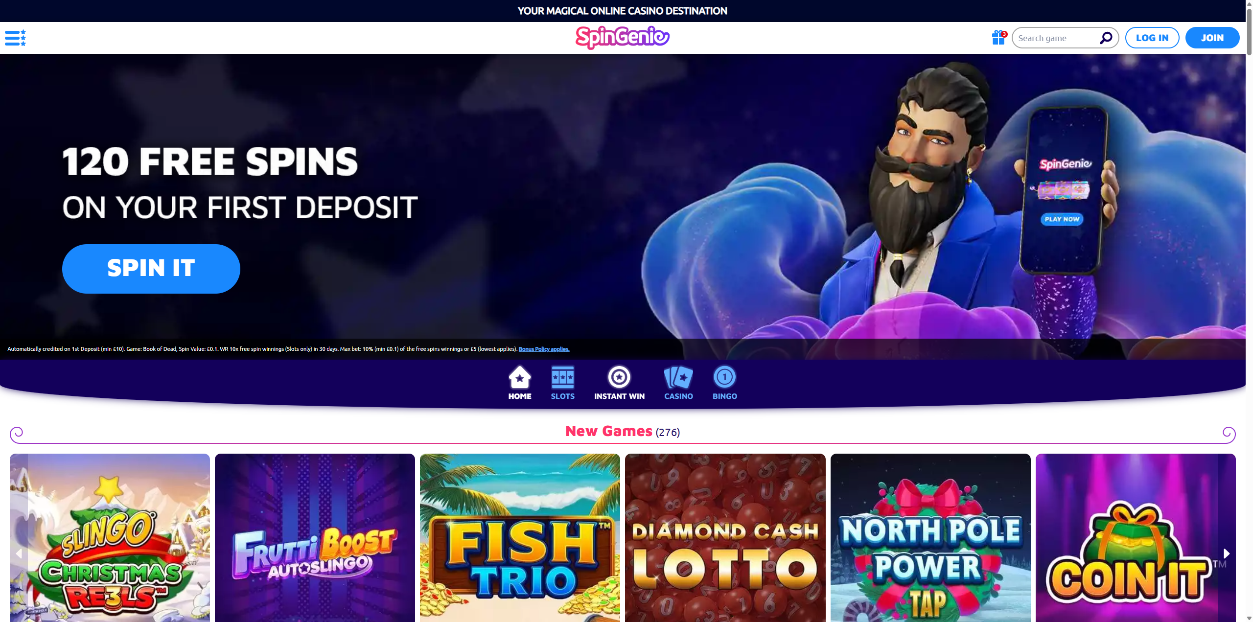 Spin Genie prides itself on being a fair, fun, and friendly online casino. Players are guaranteed a great time at Spin Genie with a huge selection of themed slots and instant win games.